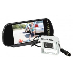 Espejo con pantalla táctil en color de 7″ para enganchar bajo el espejo interior del vehículo. Alimentación 12/24V. Cámara de un solo objetivo con micrófono integrado, función de calefacción antihielo para un uso sin preocupaciones en invierno y en la montaña y 15 LEDs infrarrojos para la visión nocturna. Incluye mando a distancia y 18 m de cable.